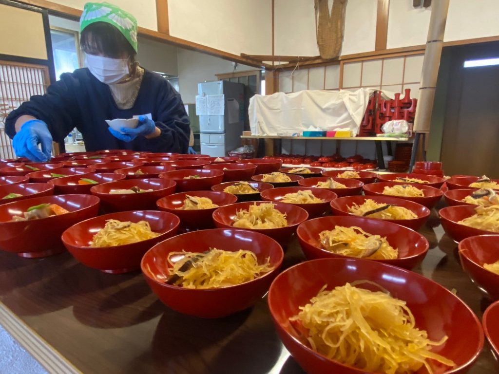冠婚葬祭で使われてきた美しい漆器と、地元のお母さんたちが作る美味しいお料理とあたたかいおもてなし。越後妻有でしか体験することができない「雪見御膳」の運営をお手伝いいただく方を複数の日程と集落で募集します。
